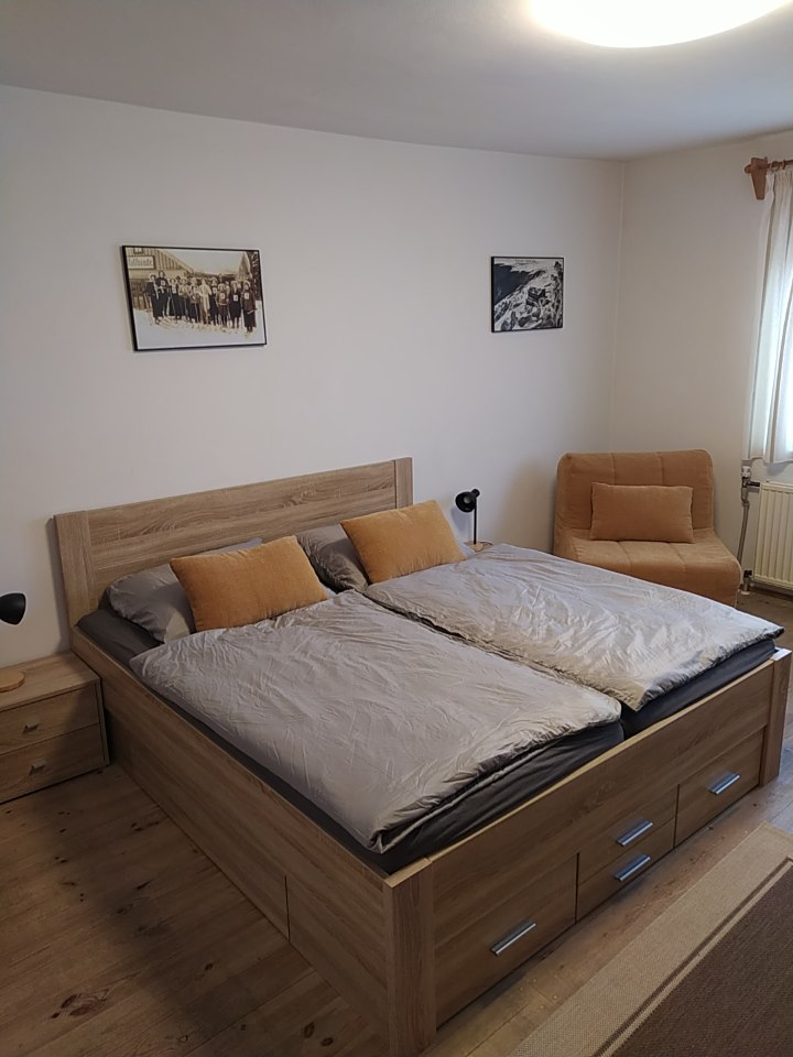 A stylish mountain cottage in the Krkonoše Mountains is located in the quiet village of Černý Důl, right next to a gently murmuring mountain stream. It is rented only as a whole and offers cozy accommodation in a traditional mountain style with wooden interior elements for 10 guests, with the option of two extra beds. It is ideal for a relaxing family holiday as well as a stay with friends. You will find a beautiful garden and plenty of space to unwind. The surrounding area offers hiking trails, cycling routes, and cross-country skiing tracks.